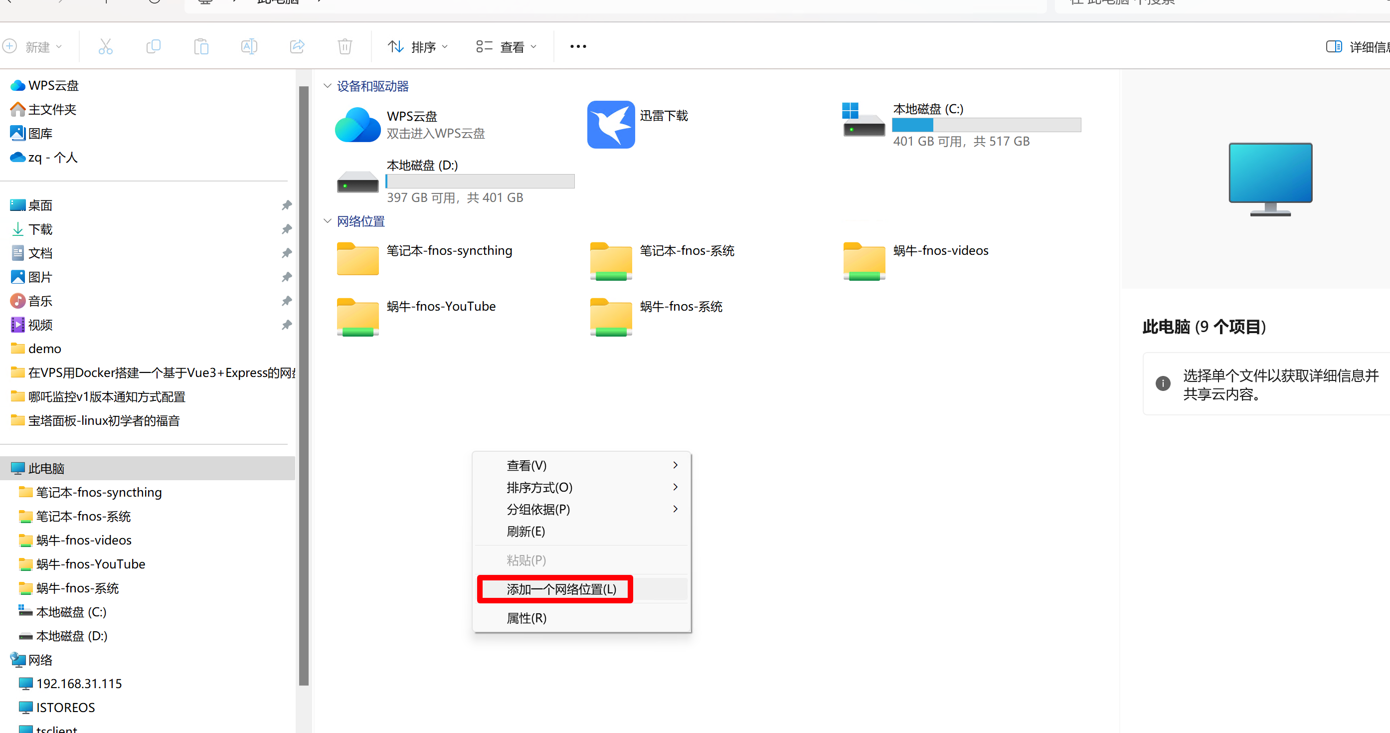 当电脑与飞牛云NAS不在同一局域网时,需要通过以下方式实现远程挂载: