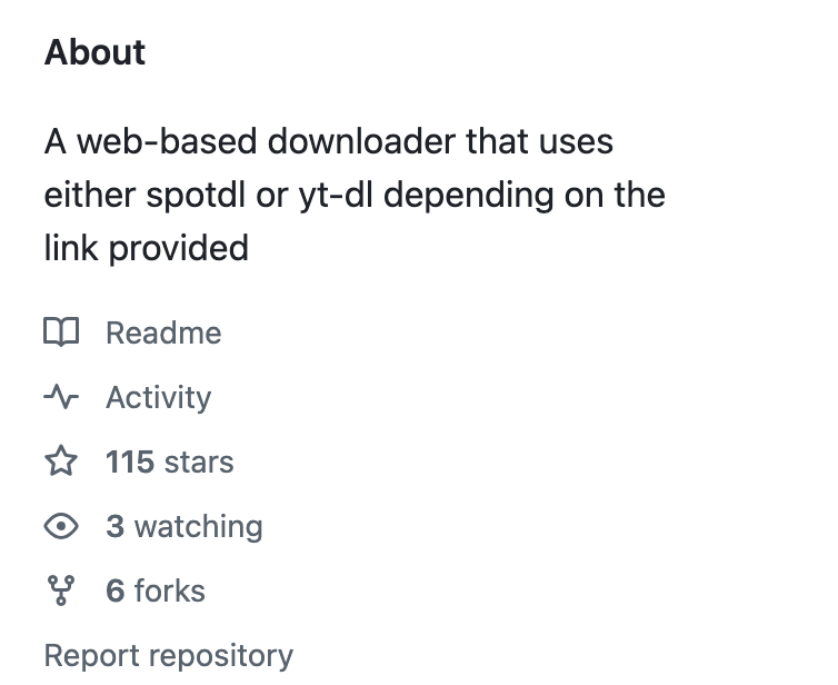 一款自托管的 Web 应用,用于从 Spotify 和 YouTube 下载 MP3 格式的歌曲、专辑或播放列表。该应用提供了一个 Web 界面,用户可输入链接,然后使用spotdl(Spotify)或yt-dlp(YouTube)下载为音频文件。