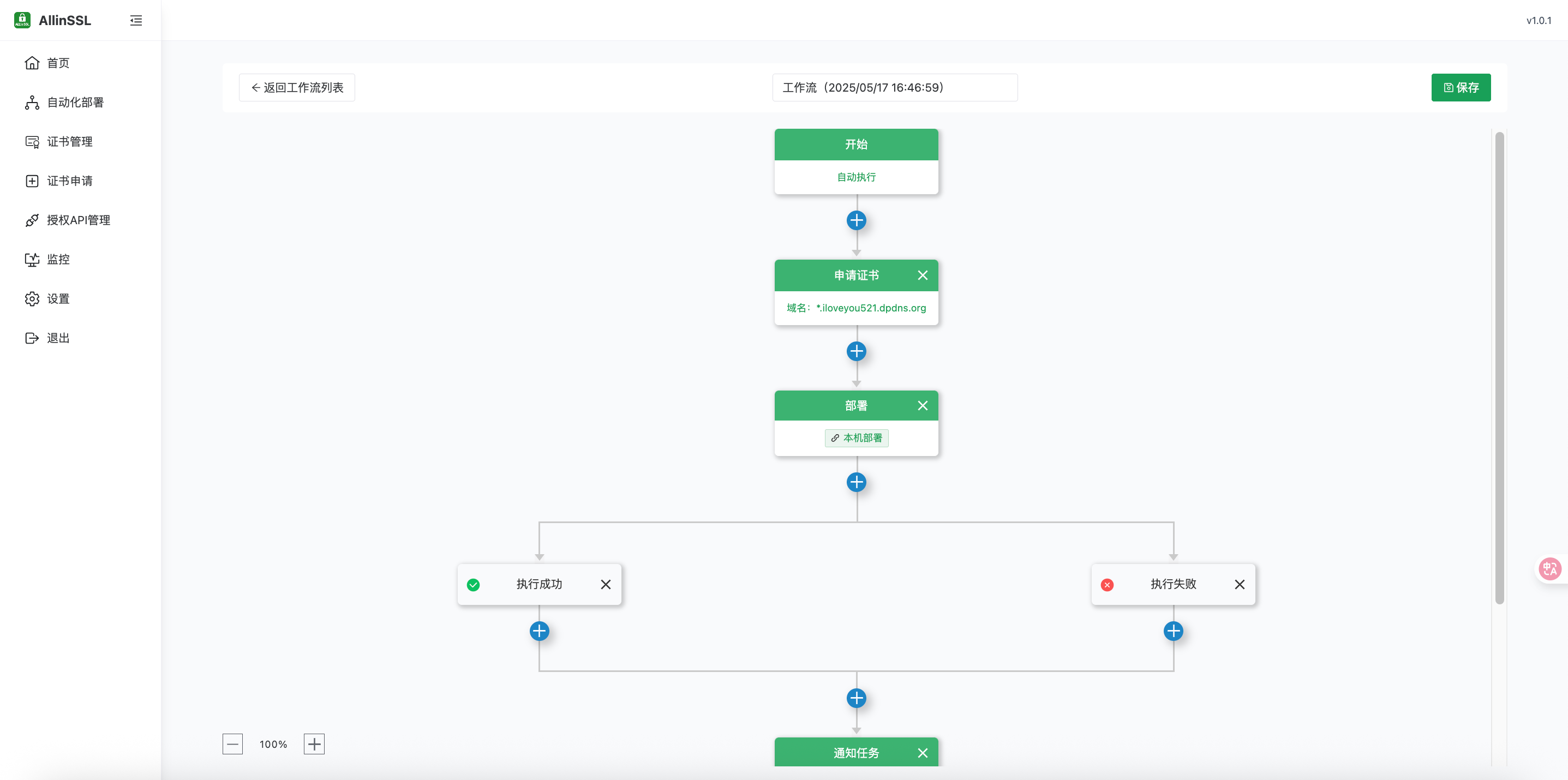 通过拖拽式或模板化的方式构建自动化部署流水线,满足不同场景下的证书部署需求,如 CDN、WAF 等。